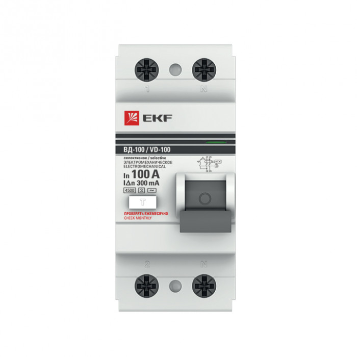 Устройство защитного отключения селективное 2P 100А/300мА (электромеханическое) EKF PROxima