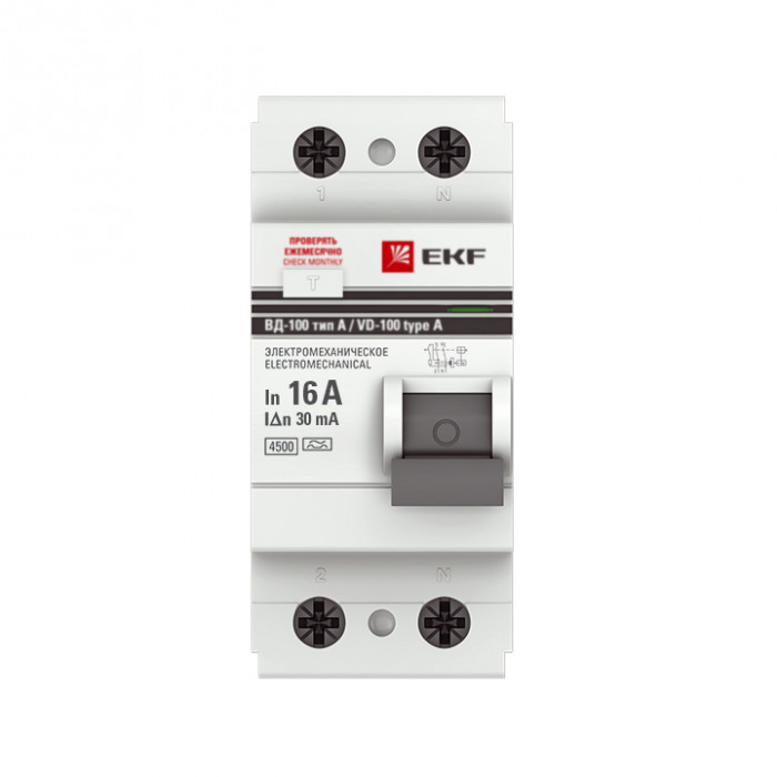 Устройство Защитного Отключения ВД-100 2P 16А/30мА (эл-мех, тип А) EKF PROxima