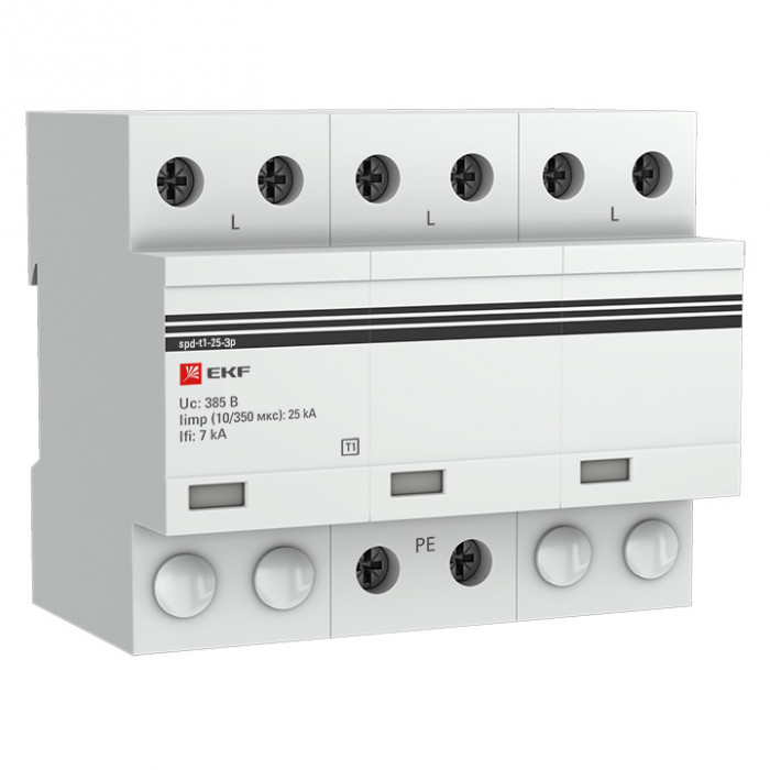 Устройство защиты от импульсных перенапряжений Тип 1 Iimp 25kA (10/350μs) 3P EKF