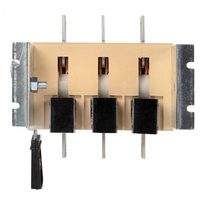 В конструкции применена трехполюсная контактная система ножевого типа с двойным видимым разрывом цепи. С помощью двойного разрыва цепи, больших растворов контактов и дугогасительных камер обеспечивается эффективное гашение электрической дуги при коммутации нагрузок, что препятствует преждевременному и чрезмерному износу контактов.