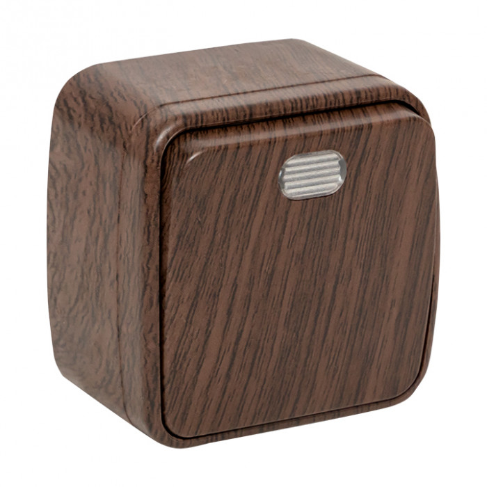 Выключатель 1-клавишный ОП Минск 10А с индикатором тёмное дерево EKF