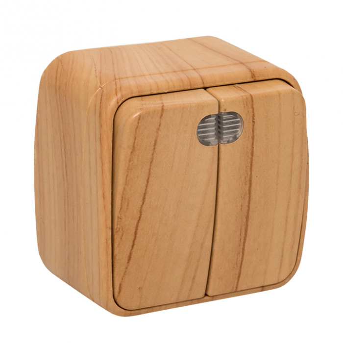 Выключатель 2-клавишный ОП Минск 10А с индикатором светлое дерево EKF