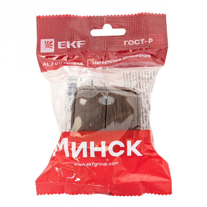 Дополнение к основной серии электроустановочных изделий для открытой проводки «Минск», компания EKF предлагает Вашему вниманию изделия в цвете светлое и темное дерево. Данный продукт сочетает в себе все преимущества и качество основной линейки с дизайном «под дерево». Все изделия изготовлены методом окрашивания с дальнейшей фактурной текстуризацией, что великолепно передает рисунок натуральной древесины. Такое покрытие долговечнее и практичнее пленки, которую используют многие компании на рынке. Новинка сочетается с прочими изделиями EKF имеющими окраску «под дерево» и позволит Вам создать комплексное решение по электроснабжению Вашего загородного дома или дачи. Конструкция и материалы серии специально оптимизированы для надежной и долговечной службы изделий и быстрого и удобного монтажа. А литое основание из полностью негорючих материалов сделает использование в условиях деревянного дома максимально безопасным.