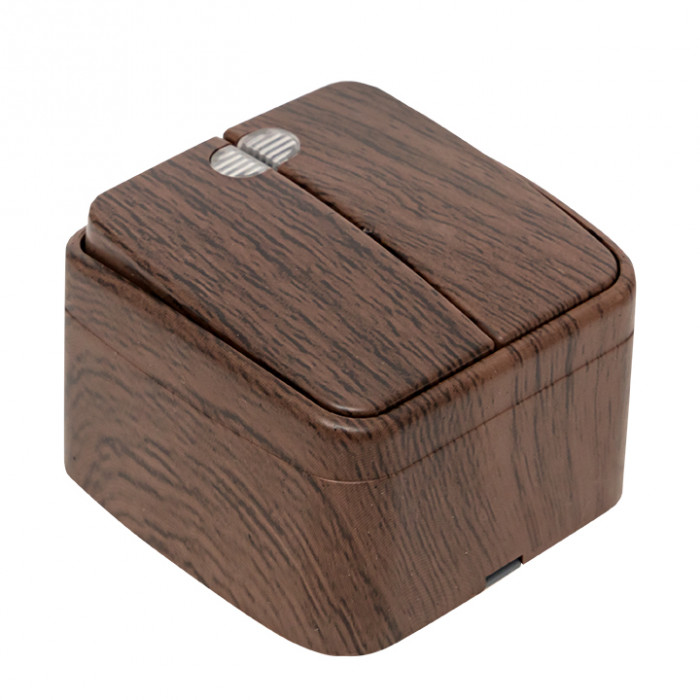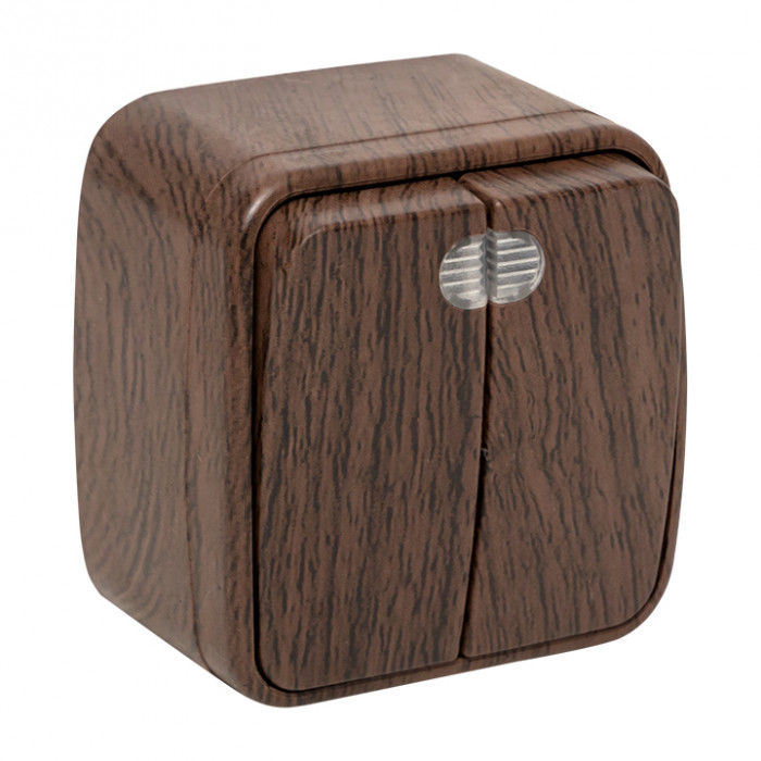 Выключатель 2-клавишный ОП Минск 10А с индикатором тёмное дерево EKF