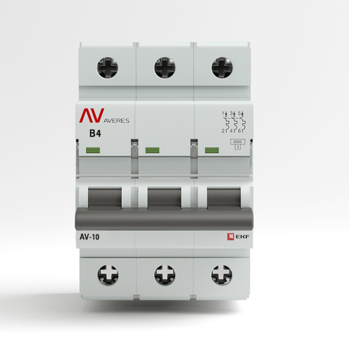 Автоматические выключатели серии AV-10 AVERES предназначены для оперативного управления участками электрических цепей, а также для защиты от токов перегрузки и короткого замыкания в административных, промышленных и жилых зданиях. Выключатели производятся в одно-, двух-, трех- и четырехполюсном исполнениях. Автоматические выключатели серии AV-10 AVERES обладают номинальной отключающей способностью Icn 10 кА.