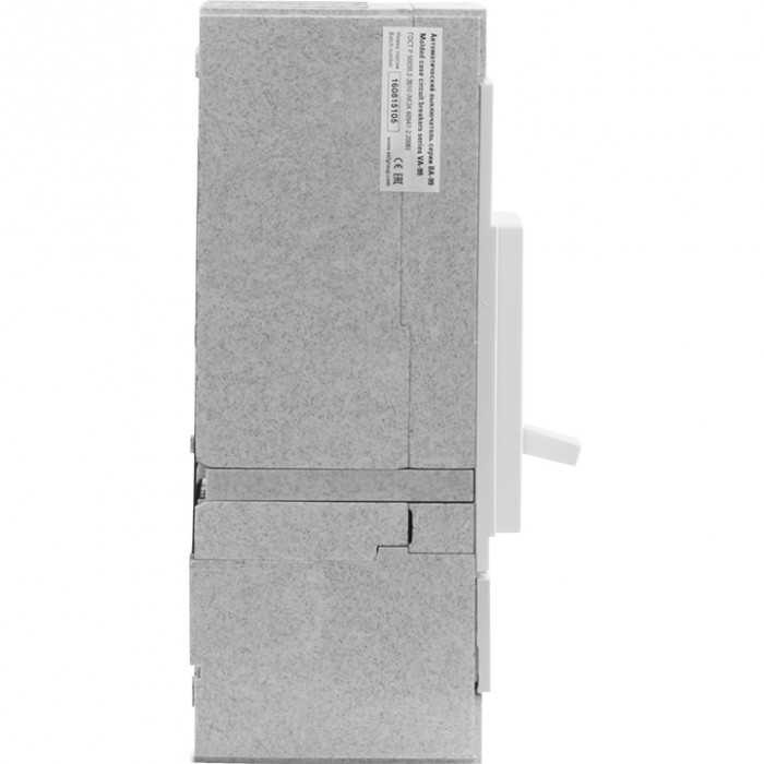 Выключатель ВА-99 выполнен в виде моноблока и состоит из основания и крышки с фальшпанелью, в которой имеется окно для рукоятки управления и толкатель кнопки «Тест» - проверки механизма отключения выключателя.