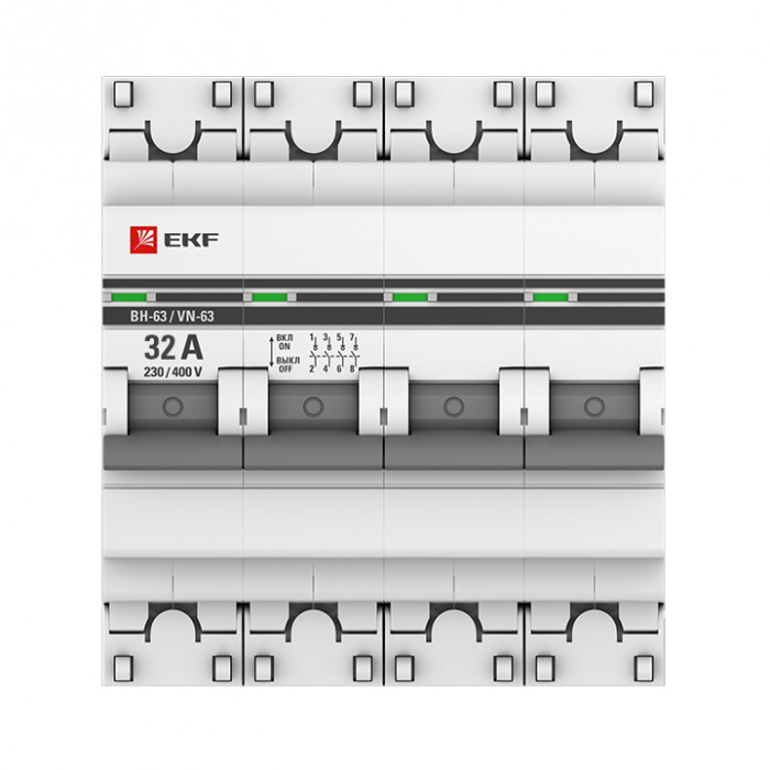 Выключатели нагрузки ВН-63 и ВН-125 EKF PROxima предназначены для оперативного управления участками электрических цепей. Выключатели производятся в одно-, двух-, трехи четырехполюсном исполнениях. Выключатели нагрузки ВН-63 (125) EKF PROxima выполнены в новом, уникальном дизайне корпуса из не поддерживающей горение пластмассы и взаимозаменяемы с ВН-63 (100).