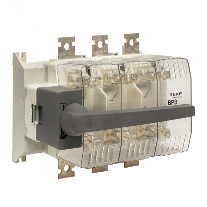 Применяются в качестве аварийного или главного выключателя для токов от 160 до 630 А во вводно-распределительных устройствах, распределительных и шкафах управления и др. Устанавливаются на монтажную панель. Конструктивно ВРЭ EKF PROxima состоит из трехполюсного основания с механизмом замыкания/размыкания контактов и дугогасительными камерами, прозрачной защитной крышки для визуального определения положения контактов и рукоятки.