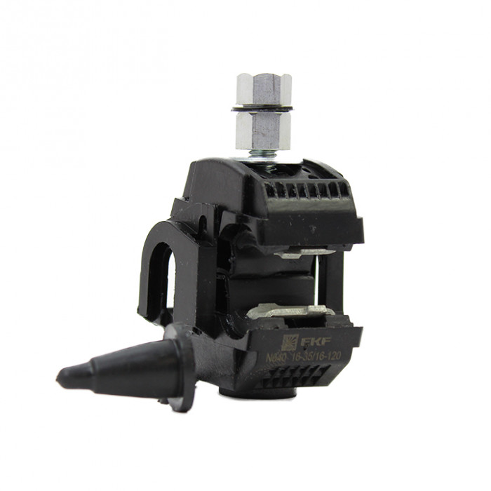 'Зажимы переходные прокалывающие типа n-640 и p-1x-95n Артикулы: p-1x-95n, n-640. Зажимы предназначены для электрического соединения СИП и неизолированных проводов ВЛ. Контакт с жилой СИП обеспечивается прокалыванием изоляции. Контроль усилия затяжки болтов осуществляется срывной головкой.'