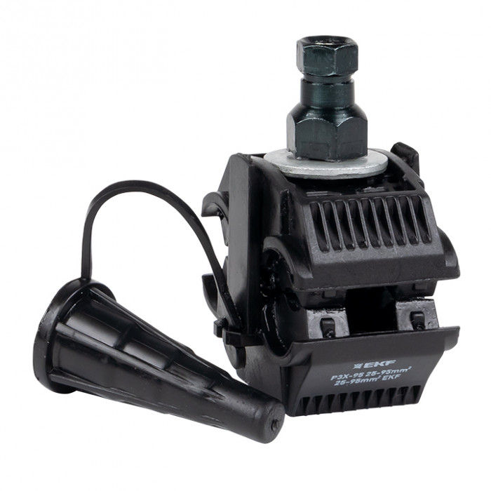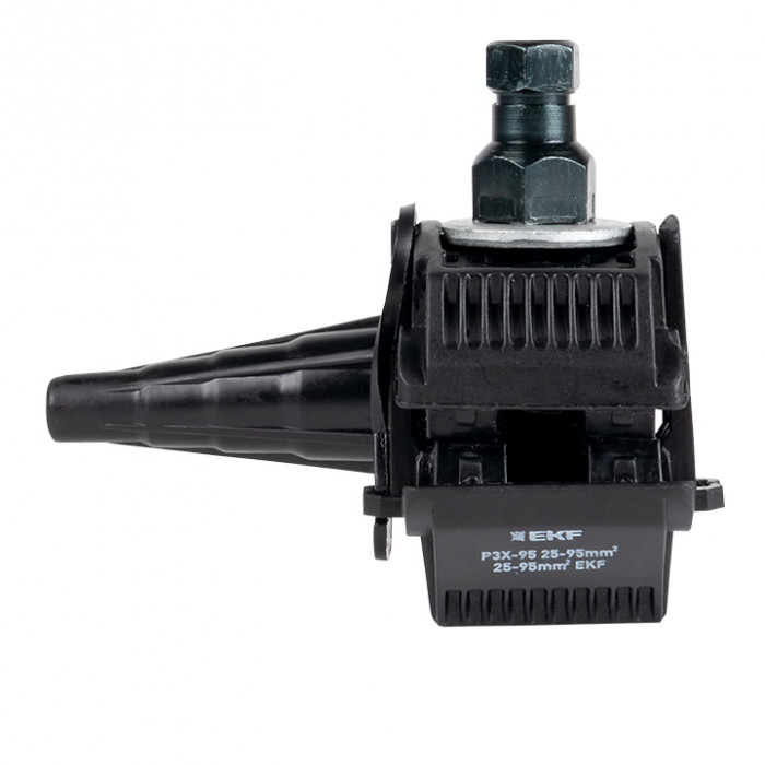 'Ответвительные прокалывающие герметичные зажимы типа p-1x-95 Артикулы: p-1x-95, p-1x-95-r, p-2x-95, p-2x-95-r, p-3x-95, p-4x-150, p-5x-150, p-6x-95. Зажимы предназначены для электрического соединения нулевой и токопроводящих жил СИП при ответвлениях от магистрали (медных или алюминиевых). Обеспечивают надежный электрический контакт. Момент срыва головки болта соответствует эквивалентному усилию, необходимому для создания электрического контакта проводов (магистрали, абонентского ответвления, освещения). На прокалывающие элементы нанесена контактная смазка. Зажимы легко устанавливаются на провод. Выпадающие компоненты отсутствуют. Болт изолирован от контактных деталей зажима.'